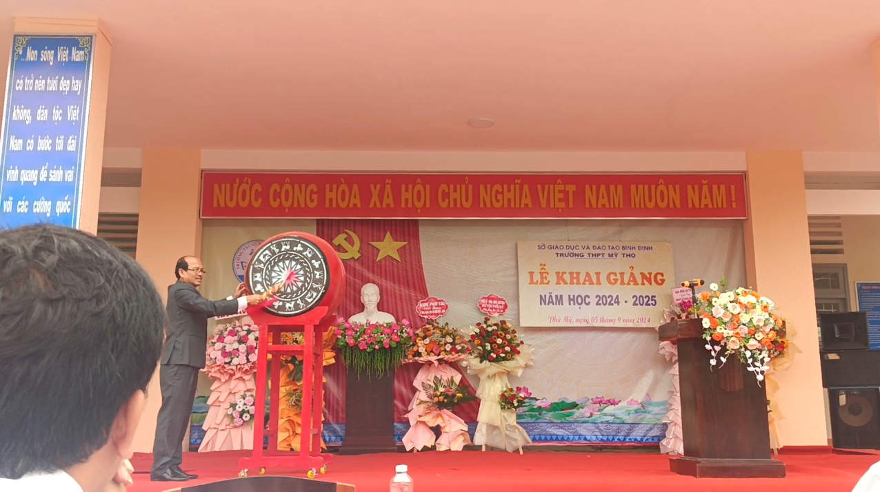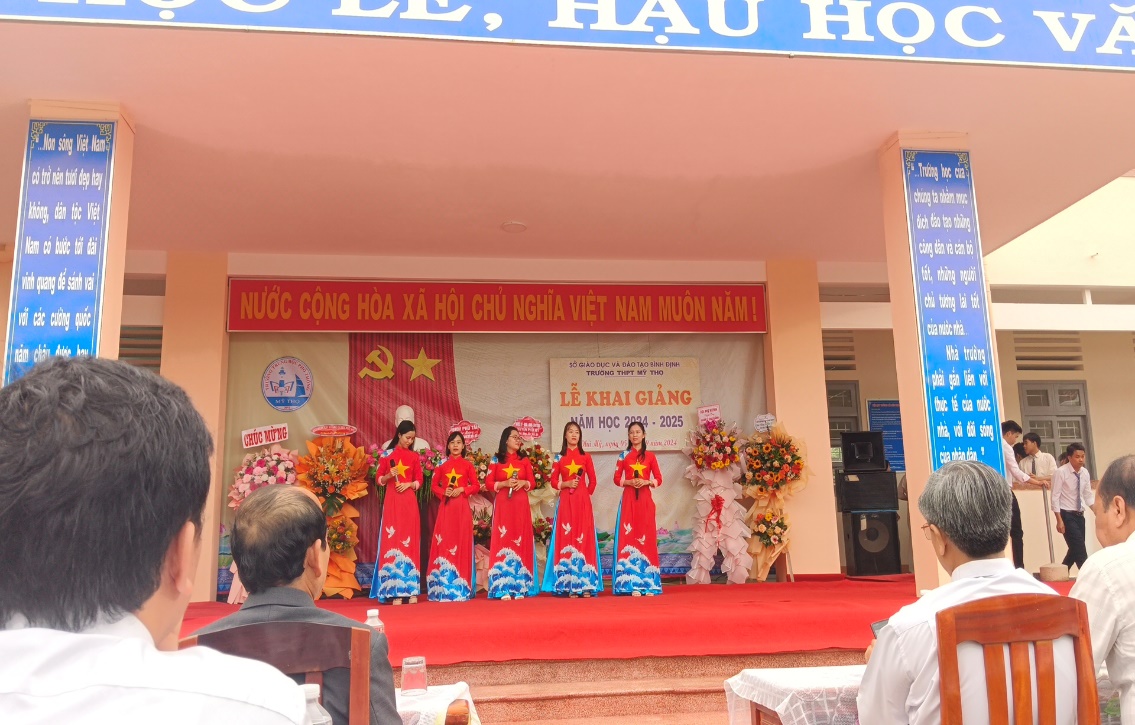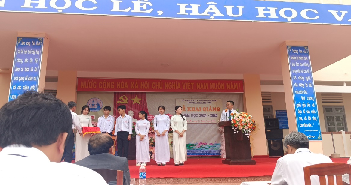 Trường THPT Mỹ Thọ, huyện Phù Mỹ, tỉnh Bình Định, long trọng tổ chức Lễ khai giảng năm học mới và trao học bổng cho học sinh có hoàn cảnh khó khăn vươn lên trong học tập.