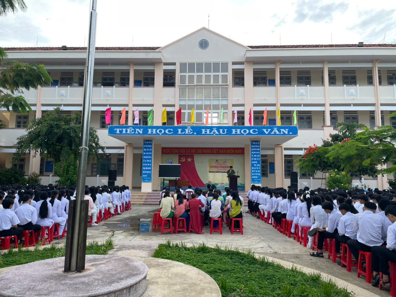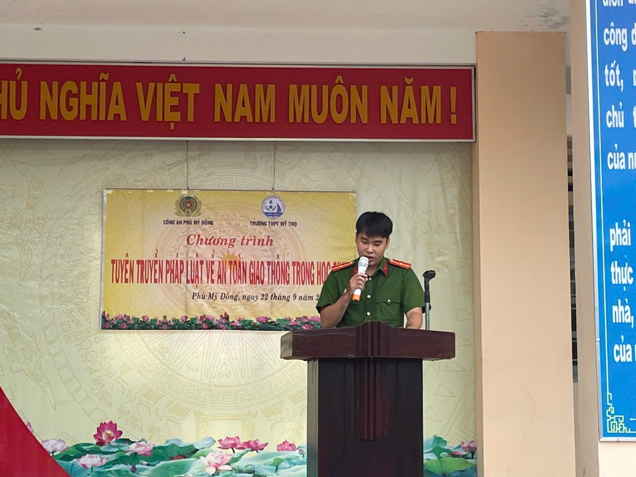 Thực hiện Kế hoạch Giáo dục năm học 2025 – 2026, sáng thứ Hai, ngày 22 tháng 9 năm 2025, Trường THPT Mỹ Thọ đã phối hợp cùng Công an xã Phù Mỹ Đông tổ chức buổi “Tuyên truyền, phổ biến kiến thức pháp luật về An toàn giao thông và kỹ năng Phòng cháy chữa cháy” cho toàn thể viên chức và 1188 em học sinh của nhà trường.