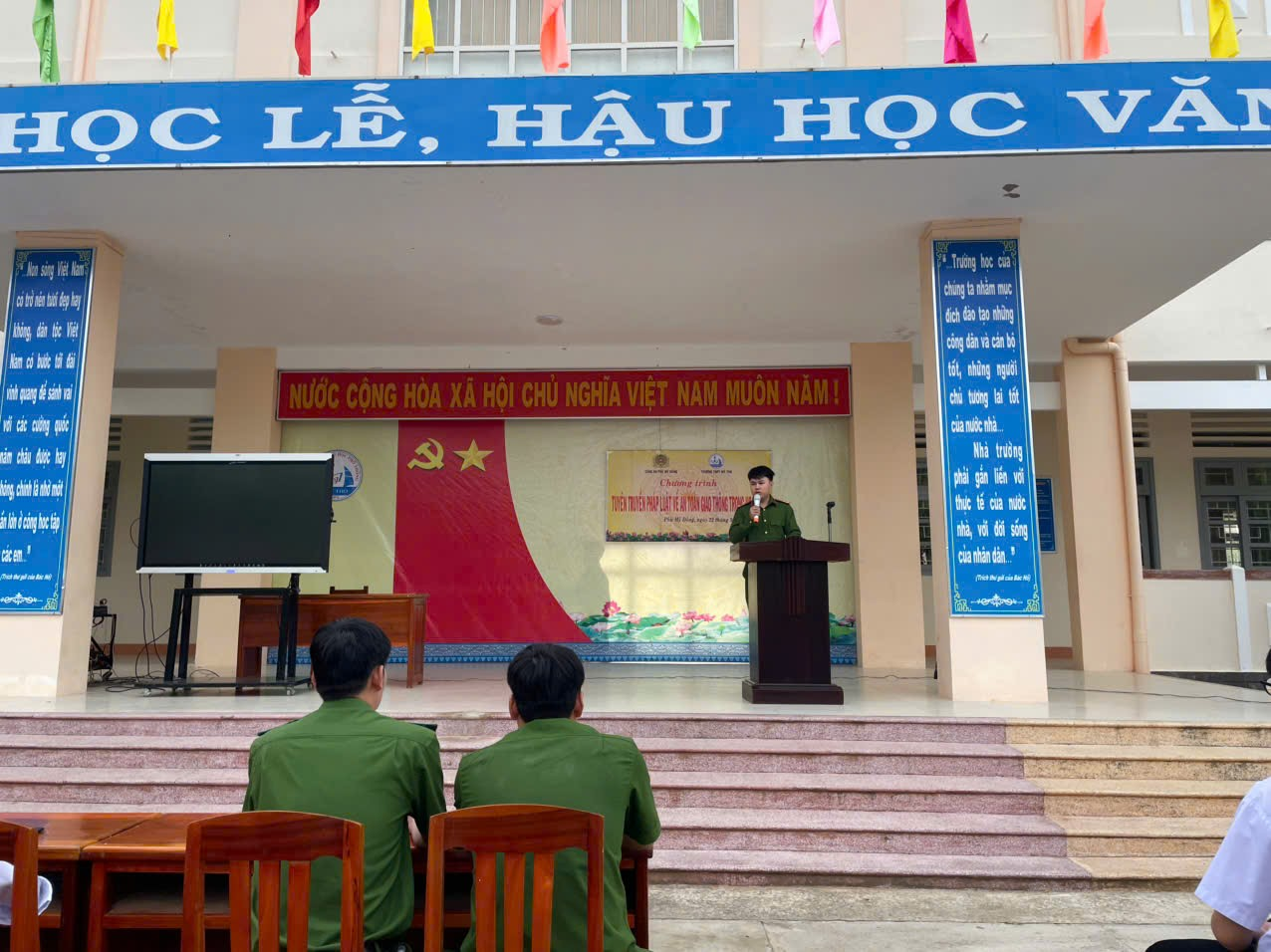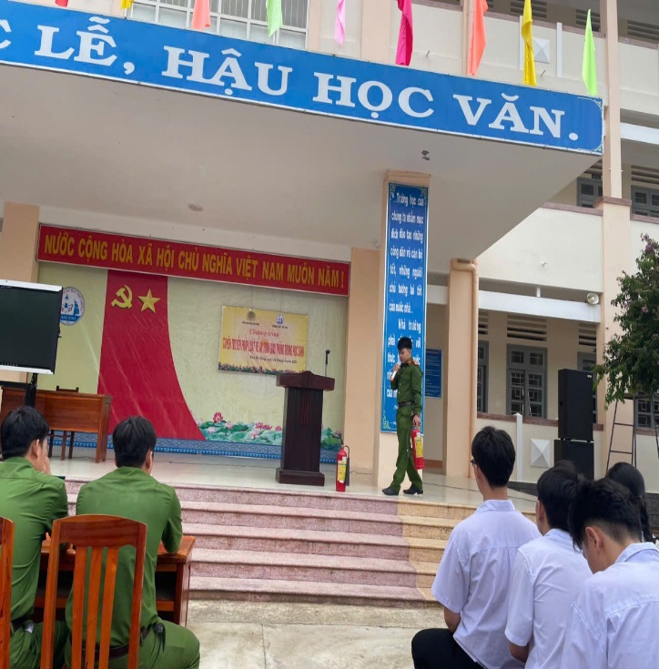 Tham dự và thực hiện công tác tuyên truyền có đồng chí: Nguyễn Xuân Hưng - Phó trưởng Công an xã Phù Mỹ Đông và các đồng chí trong đội tuyên truyền. Tại buổi nói chuyện, đồng chí Nguyễn Thanh Chương, đã trực tiếp phổ biến những nội dung quan trọng về hai lĩnh vực an toàn thiết yếu. Về An toàn giao thông, đồng chí đã phổ biến, triển khai nhấn mạnh các quy định trong Luật Giao thông đường bộ, văn hóa ứng xử khi tham gia giao thông và chỉ ra các nguyên nhân dẫn đến tai nạn. Về Phòng cháy chữa cháy, báo cáo viên đã cung cấp kiến thức về các nguy cơ cháy nổ tại trường học, gia đình và hướng dẫn các kỹ năng thoát hiểm, sử dụng phương tiện chữa cháy tại chỗ. Qua đó, trang bị cho các em học sinh những kỹ năng thiết yếu để chủ động phòng tránh rủi ro trong mọi tình huống.