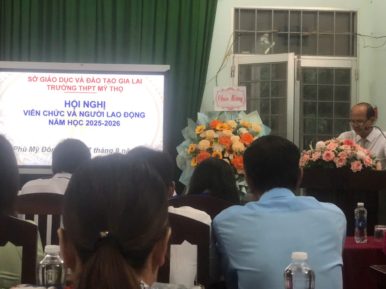 Sáng ngày 27/9/2025, Trường THPT Mỹ Thọ đã long trọng tổ chức Hội nghị viên chức và người lao động năm học 2025 – 2026. Đây là sự kiện có ý nghĩa quan trọng để tập thể sư phạm nhà trường cùng nhìn lại những thành tích đã đạt được trong năm học vừa qua, đồng thời đề ra phương hướng, nhiệm vụ và giải pháp nhằm nâng cao chất lượng giáo dục trong năm học mới.