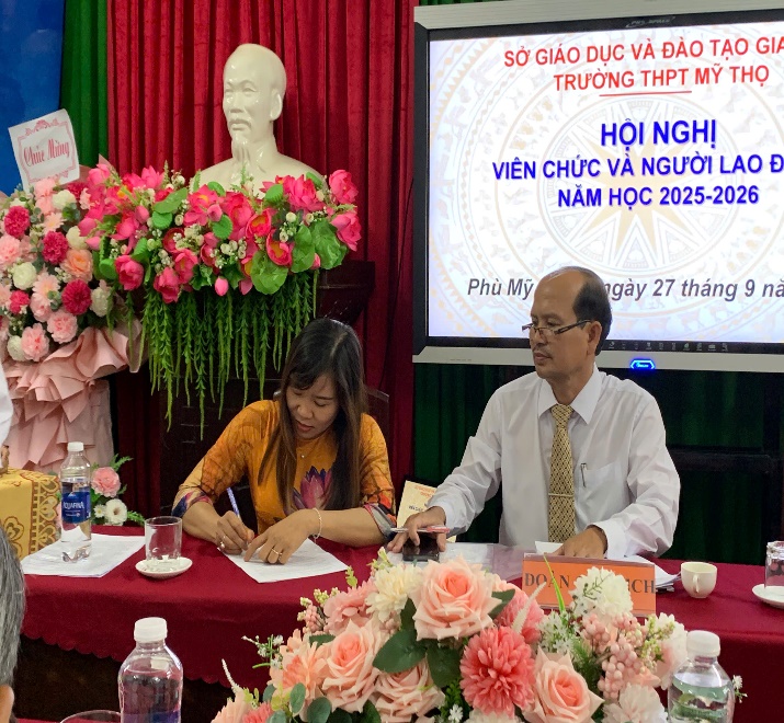 Đặc biệt, tại Hội nghị, đại diện Lãnh đạo nhà trường, Đoàn thanh niên, 6 tổ chuyên môn và tổ văn phòng đã ký cam kết thi đua năm học 2025 – 2026, thể hiện quyết tâm và cam kết của tập thể sư phạm trong việc nỗ lực hoàn thành xuất sắc mọi nhiệm vụ được giao, hướng tới mục tiêu giáo dục toàn diện cho học sinh, xây dựng nhà trường phát triển vững mạnh trong thời kì mới.