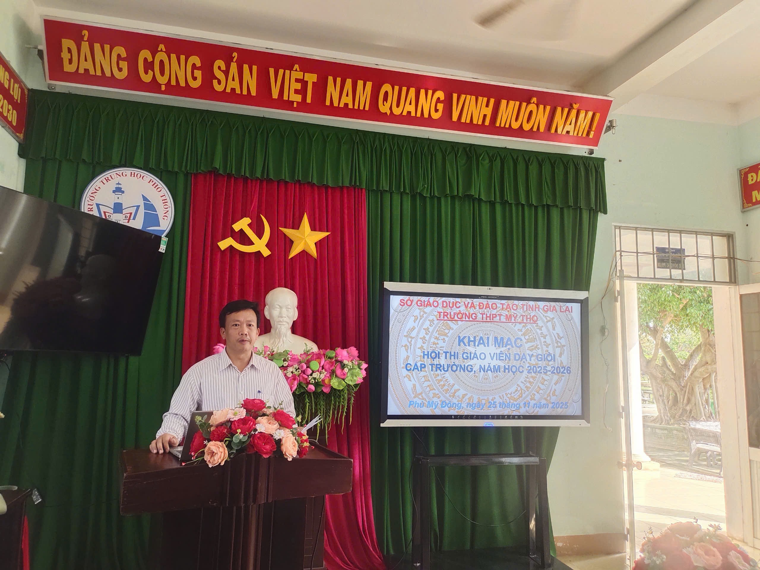 Chiều ngày 25/11/2025, Trường THPT Mỹ Thọ đã long trọng tổ chức Lễ khai mạc Hội thi Giáo viên dạy giỏi (GVDG) cấp trường năm học 2025 – 2026. Đây là hoạt động quan trọng nhằm khuyến khích đội ngũ giáo viên không ngừng phấn đấu, hoàn thiện năng lực chuyên môn, đáp ứng yêu cầu đổi mới giáo dục và góp phần nâng cao chất lượng dạy – học của nhà trường.